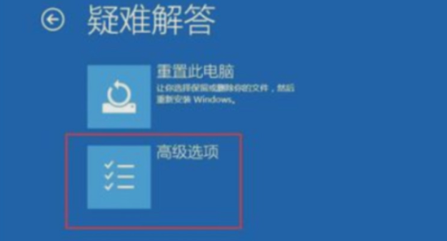 1.強制多次重啟電腦,再次開機電腦就會出現(xiàn)系統(tǒng)恢復界面。點擊“疑難解答”,進入后再選擇點擊“高級選項”。