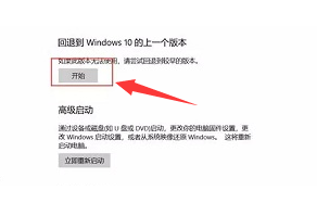 3.選擇“回退到windows 10上一個版本”,點擊“開始”就可以了。