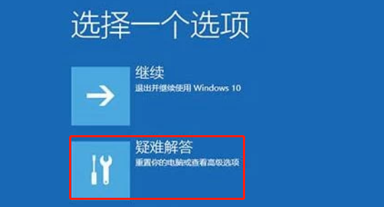1.強制重啟電腦至少三次,直到出現“高級修復選項”界面。之后點擊進入,選擇“疑難解答”。
