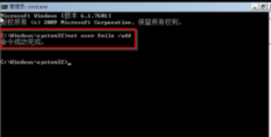 2.按下“win+r”打開運行程序,并輸入cmd打開命令提示符,輸入命令“net user smile /add”并回車執(zhí)行。待命令執(zhí)行成功后,再次重啟電腦,即可正常進入系統(tǒng)。