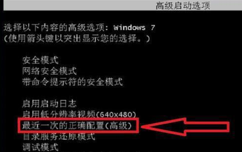 開機在歡迎界面卡住時,我們需要強制重啟電腦,然后按下f8,進入“高級啟動選項”。并用鍵盤的方向鍵選擇“最后一次的正確配置”即可。