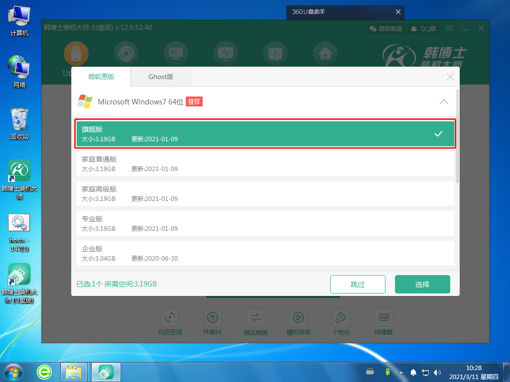 3. 在韓博士提供的系統中選擇合適的win7系統