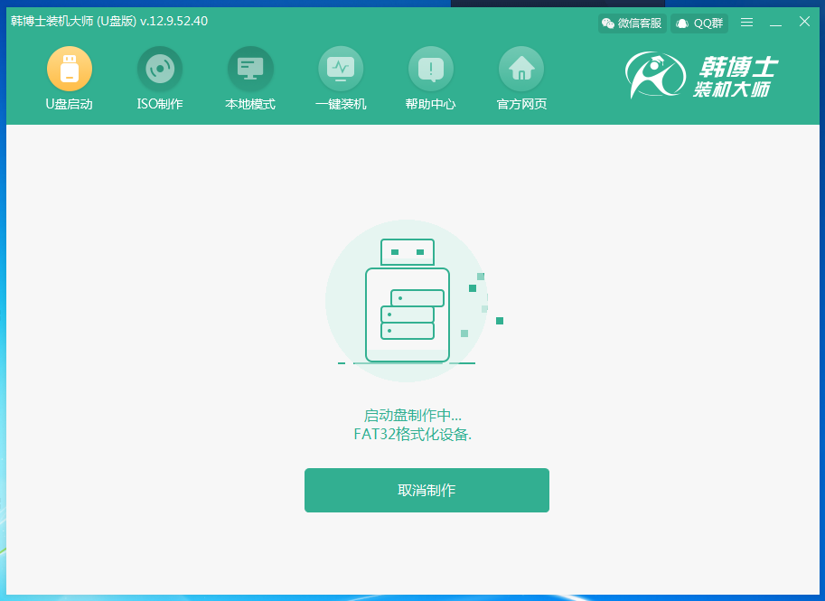 1.在桌面打開韓博士裝機大師,進入以下界面后,點擊“啟動U盤”