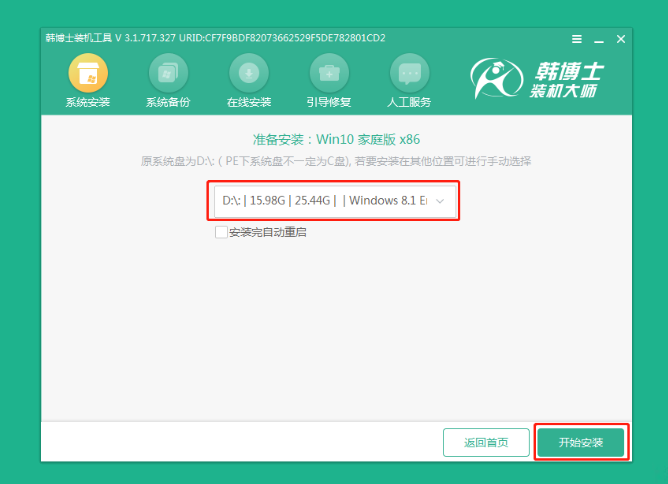 2.進入系統后,韓博士會自動打開搜索系統鏡像,找到鏡像,點擊安裝。