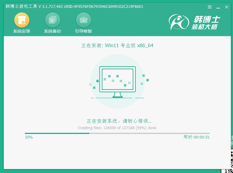 就這樣跟著圖示的流程步驟一步步來就可以成功使用U盤給電腦重裝win11系統了,如果你剛好有需要給電腦重裝win11系統,可以參考上面的方法重裝。而且韓博士U盤啟動盤制作好后,后續也可以使用,是非常方便的。另外,如果在重裝的過程遇到問題,可以咨詢官網的技術客服,會耐心為你解答!